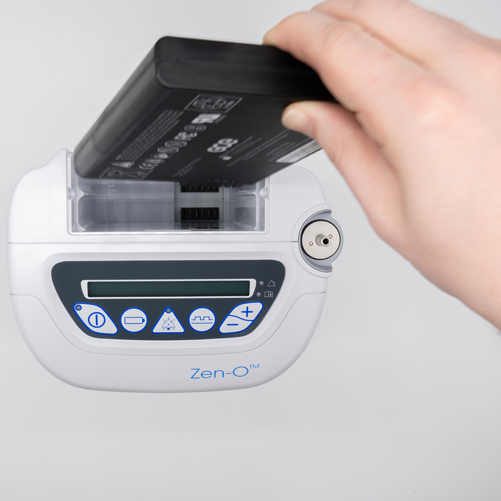 Zen-O™ can be purchased with one or two 12-cell Lithium batteries providing up to 9 hours of use (on Setting 2 pulse) on a single charge depending on usage conditions, flow mode and setting. The battery compartment can house two batteries at the same time