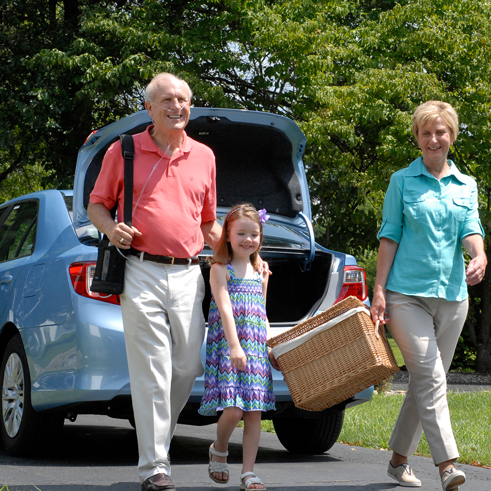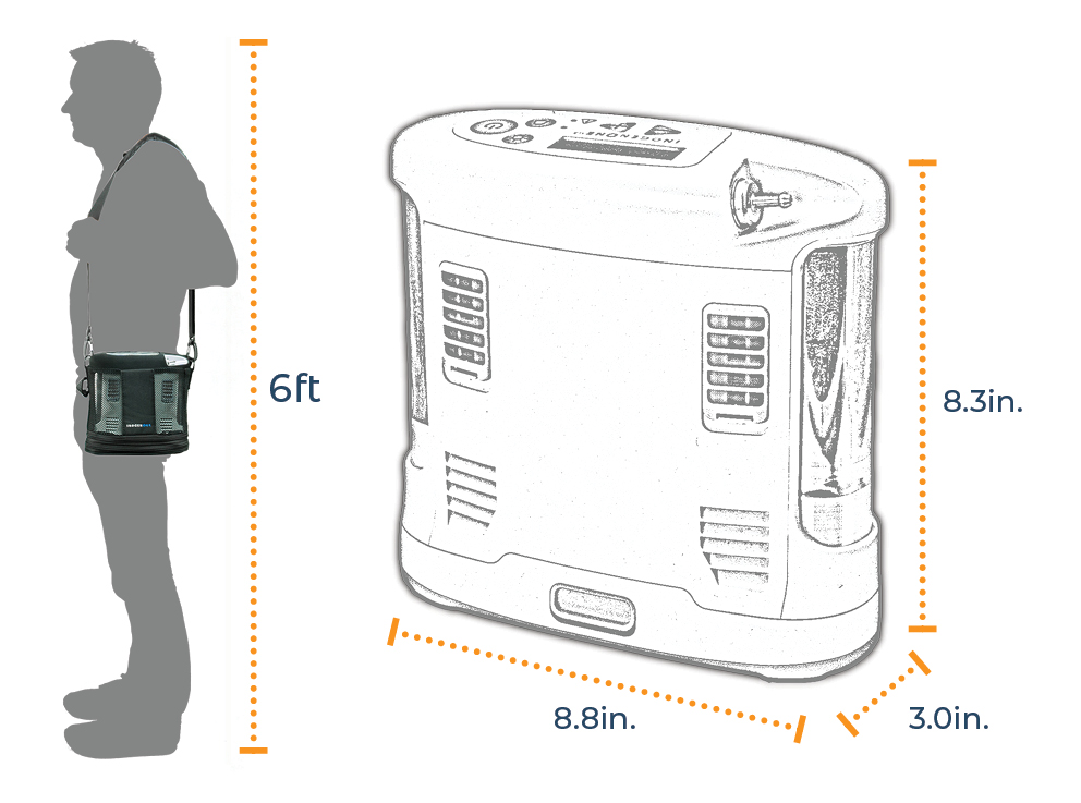 This compact oxygen solution weighs from only 4.9lbs (2.2kgs) and can be worn easily over the shoulder in its protective black bag. A backpack accessory is also available separately for even greater comfort and independence.
