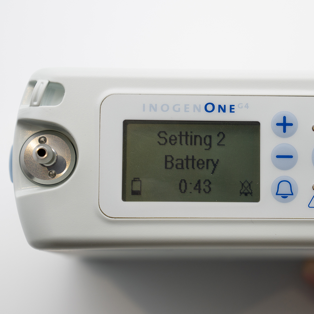 Users can opt to purchase the INOGENONE® G4 with either a 4 or an 8 cell battery. The INOGENONE® G4 with the 8 cell battery installed offers the best battery life with up to 5 hours operation time. Versus the 4 cell battery, the 8 cell battery does add approximately ½ lb to the overall carrying weight which is a small compromise in order to remain mobile for longer.