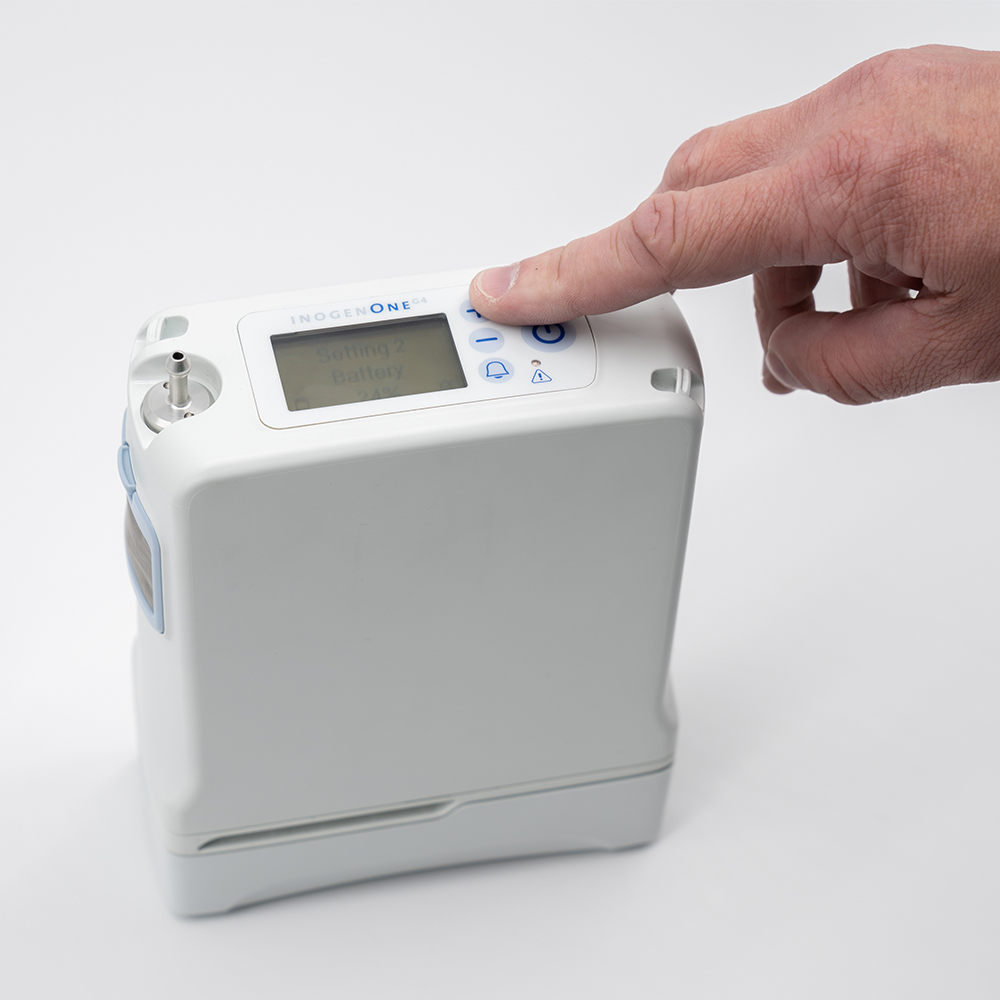 Weighing from as little as 2.8lbs (1.27kg), the INOGENONE® G4 really does “punch above it’s weight” with an incredibly compact, sleek, and stylish design. It is the smallest and lightest portable oxygen concentrator in our range offering 3 pulse flow settings.