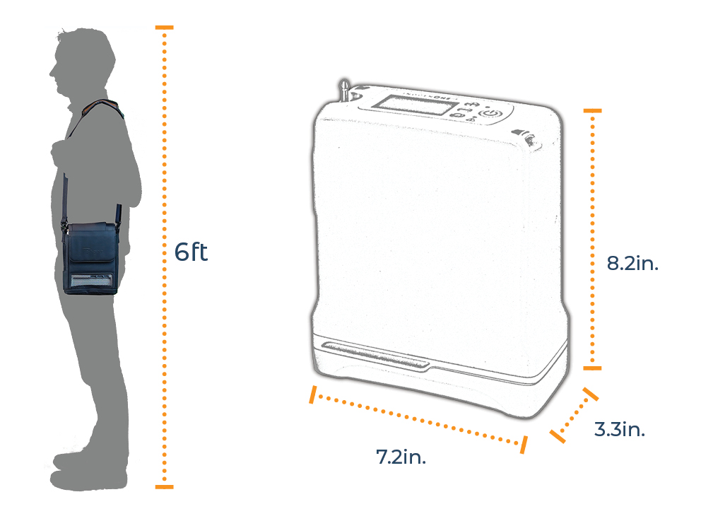 2.6kgsThis lightweight oxygen concentrator can easily be worn over the shoulder with the provided carry bag and shoulder strap. An optional backpack accessory is available separately for even greater comfort whilst mobile.