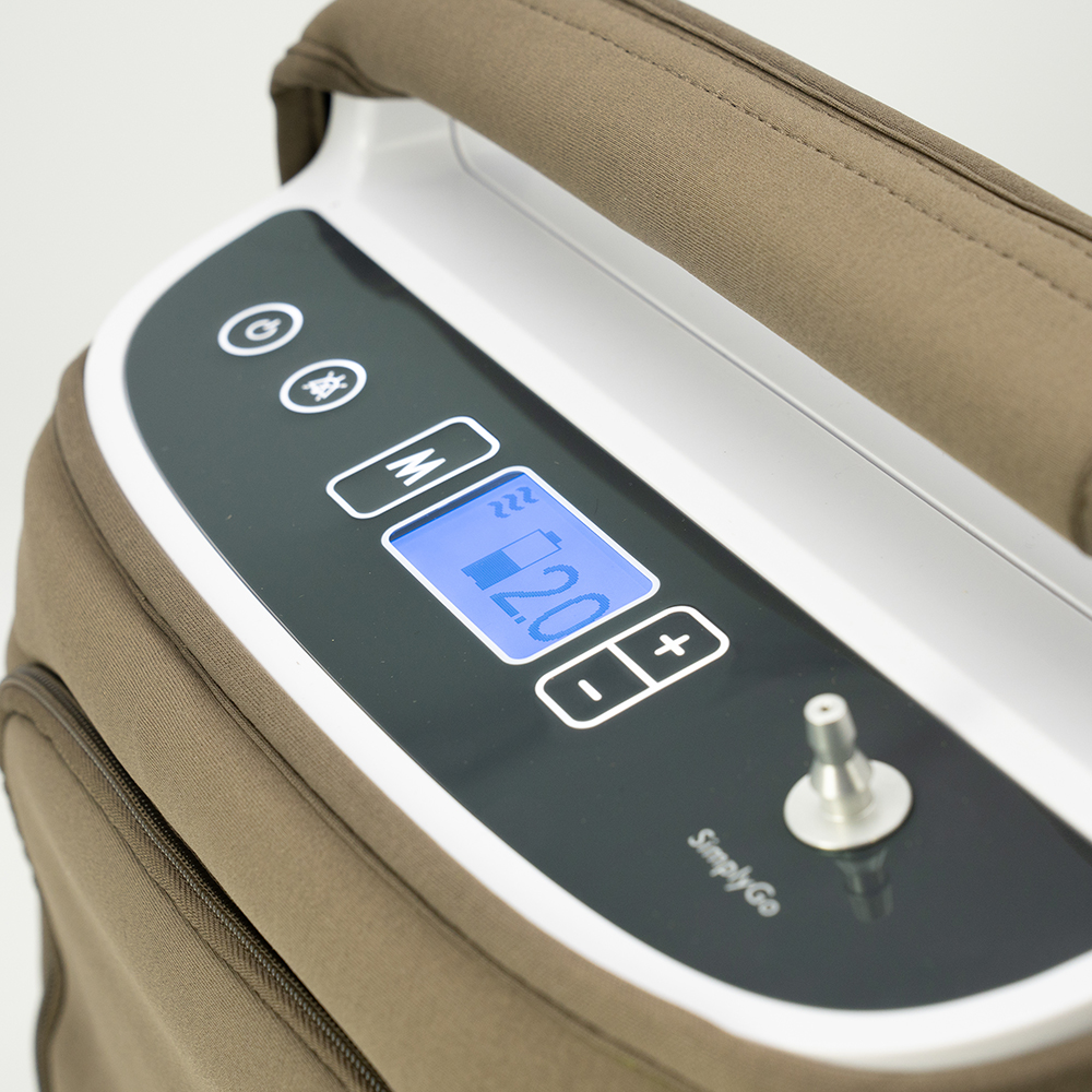 LPM Continuous FlowThe SimplyGo produces oxygen with a concentration of 90% -3% /+ 6%. Mode and flow settings are easily adjusted via the control panel.